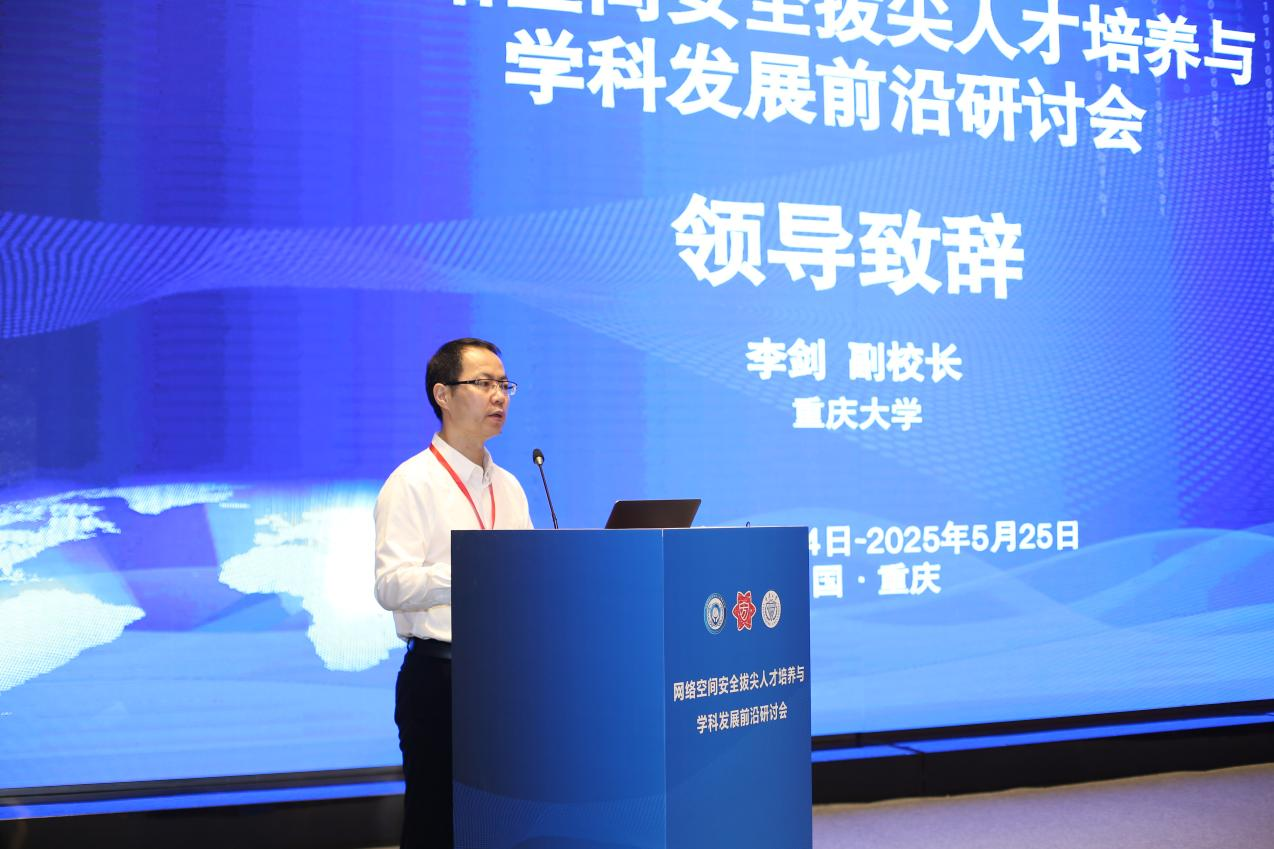 李剑代表重庆大学向大会致辞。他强调,在数字浪潮奔涌的新时代,网络安全人才的培养既需要教育创新的澎湃动力,更需要如嘉陵江水般生生不息的战略定力。